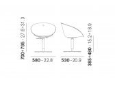 Вращающееся кресло Gliss имеет комфортную и эргономичную форму, которая черпает вдохновение из культовых кресел пятидесятых, и характеризуется отличительным элементом - отверстием в спинке. Коллекция отличается комфортом и функциональностью, благодаря изогнутым подлокотникам, обеспечивающим чувство защищенности. Круглая форма корпуса и материал создают многочисленные отражения, подчеркивая объем.
