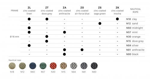 Обращаем ваше внимание, что каждый цвет каркаса сочетается только с определенными цветами плетения. При выборе цветовой комбинации ориентируйтесь на таблицу с палитрой, где указаны доступные варианты сочетаний.