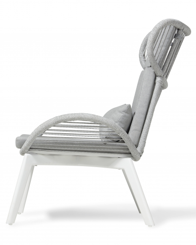 Лаунж кресло Fiji с высокой спинкой и большой подушкой обеспечит максимальное расслабление во время отдыха возле бассейна, в саду или на террасе. Используемые материалы - алюминий, акриловый канат и акриловые подушки делают кресло подходящим для использования на улице - оно не подвержено воздействию прямых солнечных лучей, коррозии, плесени. Кресло Fiji подойдет для обстановки частных и коммерческих открытых пространств.