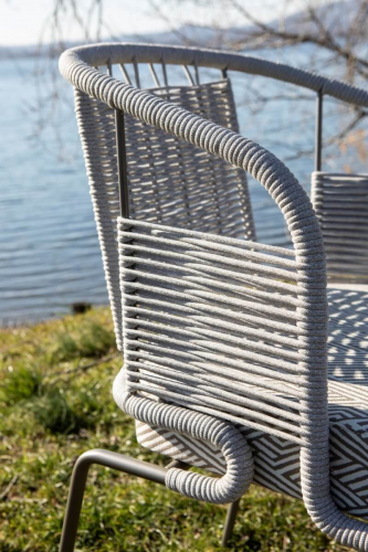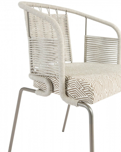 Как произведение искусства, стулья Pietrasanta с их легким и извилистым плетением предлагают плавное сочетание комфорта и практичности. Эргономичная форма спинки, украшенная красивыми переплетениями канатов, и мягкое сиденье придают декоративный оттенок, казалось бы, простому дизайну кресла. Благодаря своим естественным тонам и обтекаемому силуэту, это кресло является универсальным дополнением к любому дизайнерскому интерьеру.