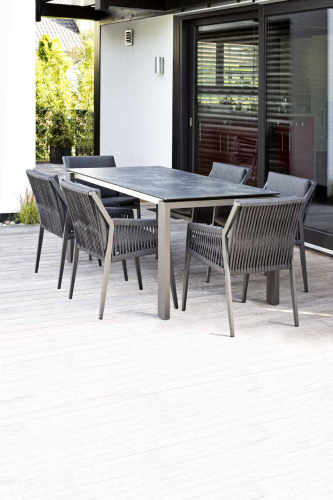 Кресло Ritz от Jati & Kebon делает террасу уютным местом. Благодаря своему декоративному канатному плетению и прочному алюминиевому каркасу оно создает не только комфорт, но и стильную атмосферу на открытом воздухе. Прочное канатное плетение из полиолефина выдерживает даже ливневый дождь и может без проблем оставаться на улице. С садовым креслом Ritz терраса становится местом, где каждый любит проводить время.