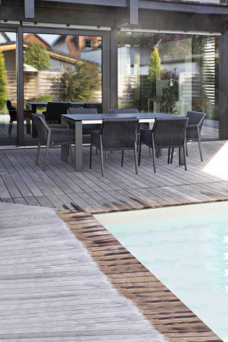 Садовая мебель из алюминия идеально подходит для использования на улице. Малый вес и устойчивость к атмосферным воздействиям делают алюминий чрезвычайно привлекательным. Алюминиевая садовая мебель Jati & Kebon покрыта высококачественной порошковой краской. Многие изделия доступны в разных цветах. Практически вся алюминиевая садовая мебель из ассортимента изготавливается вручную.