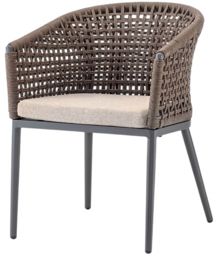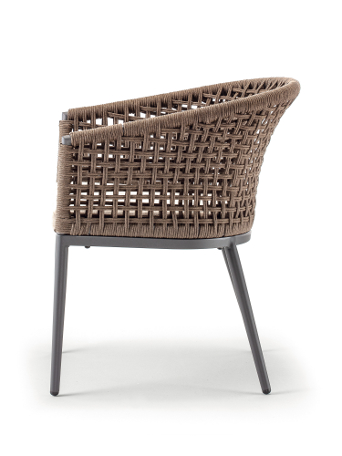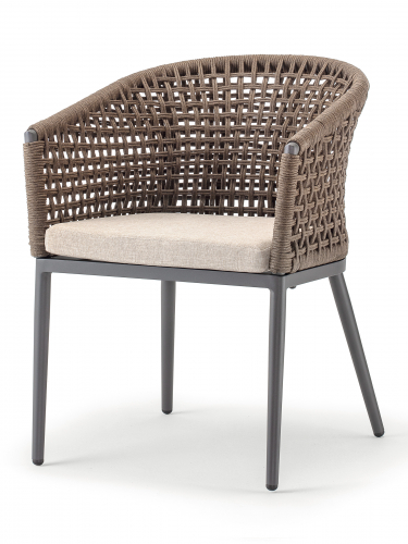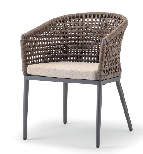 Кресло Cuba сочетает в себе прочный алюминиевый каркас с порошковым покрытием и канатное плетение из полиэстера (Ø4 мм) спинки и подлокотников. Мягкая подушка на сиденье с олефиновым чехлом, устойчивым к пятнам и ультрафиолетовому излучению дополнит комфортный отдых. Это кресло идеально подходит для создания лаунж или обеденной зоны в саду или на террасе. Коллекция Cuba идеально подходит для тех, кто хочет произвести впечатление с помощью дизайнерской мебели в интерьере и на открытых площадках.