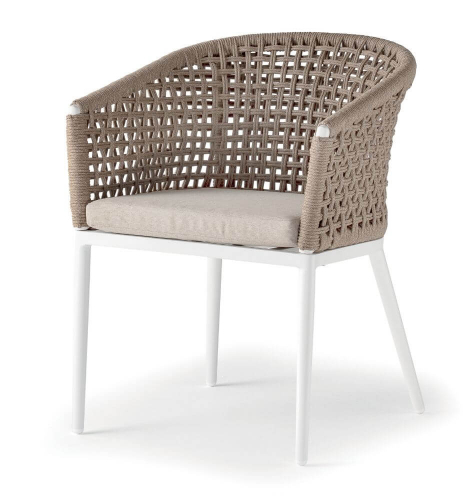Кресло Cuba сочетает в себе прочный алюминиевый каркас с порошковым покрытием и канатное плетение из полиэстера (Ø4 мм) спинки и подлокотников. Мягкая подушка на сиденье с олефиновым чехлом, устойчивым к пятнам и ультрафиолетовому излучению дополнит комфортный отдых. Это кресло идеально подходит для создания лаунж или обеденной зоны в саду или на террасе. Коллекция Cuba идеально подходит для тех, кто хочет произвести впечатление с помощью дизайнерской мебели в интерьере и на открытых площадках.