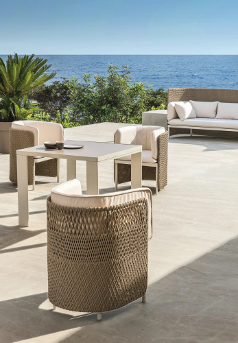 Привлекательная эстетика и необычные текстуры рассказывают историю Esedra - коллекции для отдыха на открытом воздухе, разработанной Luca Nichetto - звездой нового каталога Ethimo.