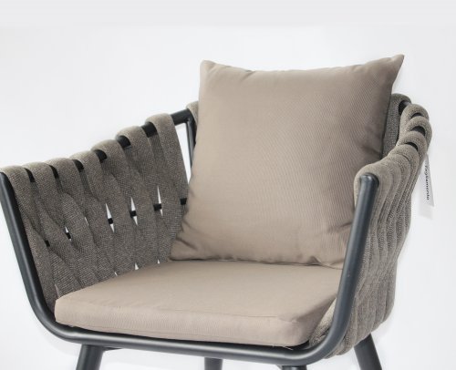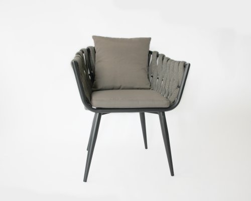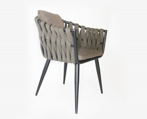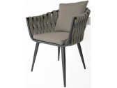 Уличное кресло с эргономичным и современным дизайном с алюминиевым каркасом и спинкой в плетении из роупа. Модель подходит для открытой террасы бара, ресторана, отеля или небольшого частного зимнего сада.