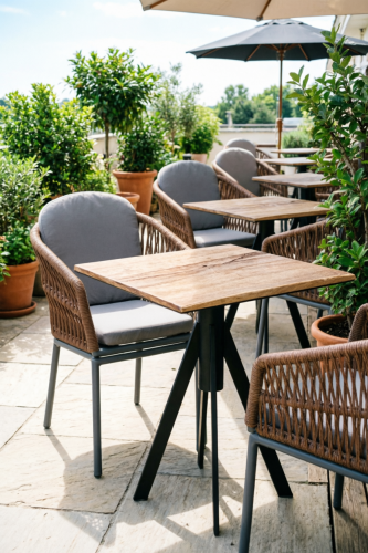 Обеденное кресло Favorita привлекает внимание и, несомненно, украсит любое открытое пространство. Уличное кресло с эргономичным и современным дизайном с алюминиевым каркасом и спинкой в плетении из роупа. Модель подходит для открытой террасы бара, ресторана, отеля или небольшого частного зимнего сада.