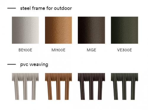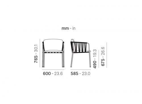 Коллекция кресел Narì повторяет некоторые элементы первых моделей фабрики Pedrali из кованого железа 1960-х годов в современном ключе. Отличительная особенность ножек, выкованных вручную, выражена в использовании двойной стальной трубы, которая имеет более простую и линейную форму. Плетеный элемент, созданный в Италии опытными мастерами, сужается к нижней части сиденья и расширяется к верхней, напоминая о веерообразной геометрии, вдохновленной спинкой кресла Serenella. На сиденье и спинке предусмотрена удобная подушка, состоящая из двух секций, соединенных застежкой-молнией.
