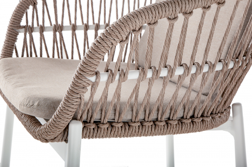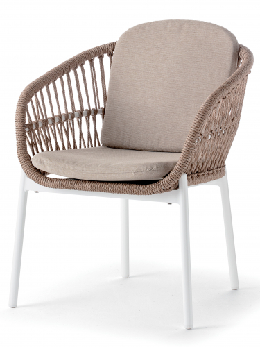 Уличное кресло Elba выполнено из окрашенного алюминия со спинкой и подлокотниками, покрытыми плетением синтетического каната Wintech (роупа), создающего красивый рисунок. На сиденье и спинке съемные подушки из олефина с набивкой из быстросохнущей пены. Это кресло идеально подходит к частным и общественным открытым пространствам, подчеркивая их современность и стиль.