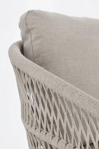 Galdana - современное плетеное кресло, которое идеально сочетает в себе стильный дизайн и функциональность для использования на открытом воздухе. Прочный каркас из алюминия с порошковым покрытием обеспечивает долговечность и устойчивость к коррозии, а плетение из олефиновой веревки выдерживает любые погодные условия, сохраняя безупречный внешний вид годами. Эргономичная форма с объемной спинкой обеспечивает максимальный комфорт, а съемные подушки из 100% водоотталкивающего полипропилена просты в уходе и быстро сохнут.