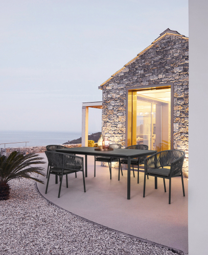 Плетеное кресло Florencia станет идеальным дополнением обеденной зоны в саду частного дома и на летней площадке. Изумительное плетение делает модель уникальной, а алюминиевый каркас – надежной. Кресло будет придавать пространству теплый и гостеприимный характер.