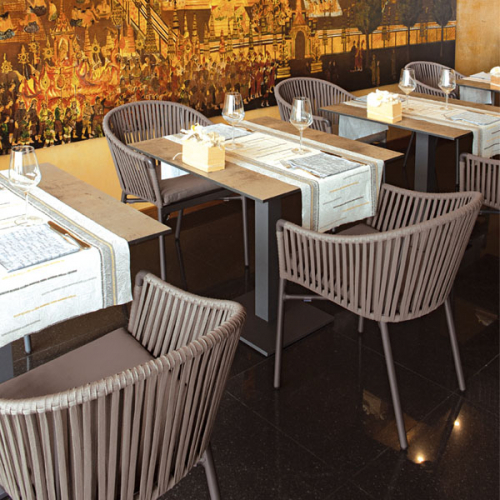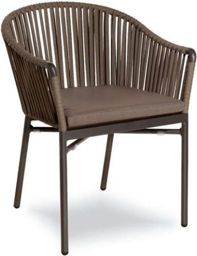 Плетение из роупа является отличительным элементом кресла Karin, создавая привлекательную и текстурированную отделку, охватывающую металлическую раму. Спинка плавно и волнообразно перетекает в удобные подлокотники, максимально обхватывая сидящего и гарантируя идеальный комфорт. Кресла Karin подходят для обстановки летней веранды, столовой или кухни в частном доме, прекрасно дополнят обеденную зону на открытом воздухе, станут украшением летней площадки кафе или ресторана.