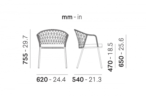 Дизайн коллекции Panarea был навеян картиной средиземноморского побережья, с террасой с видом на море и легким бризом. Отличительной особенностью кресла является полипропиленовый канат, сотканный вручную в Италии, который оплетается вокруг стального каркаса. Подушка сиденья набита пенополиуретаном, покрыта тканью, изготовленной из той же пряжи, что и канат. Данная модель подходит для использования как на открытых площадках, так и для закрытых пространств.