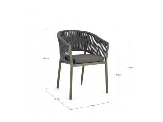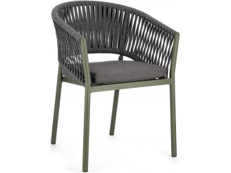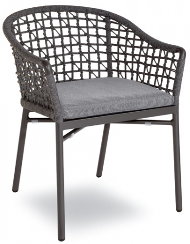 Обеденное кресло Karin Net выполнено из алюминия с порошковым покрытием из полиэстера. Покрытие ручной работы из роупа. Подушка со съемным чехлом из ткани ПВХ с набивкой из быстросохнущего поролона. Модель идельано подходит для интерьеров и открытых пространств частного или коммерческого типа.