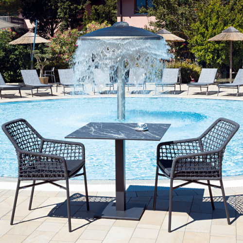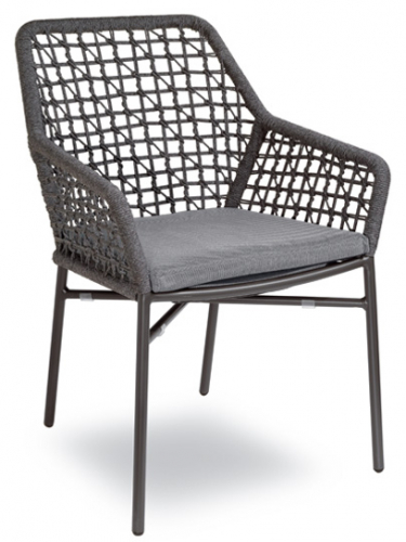 Обеденное кресло Giselle Net выполнено из алюминия с порошковым покрытием из полиэстера. Покрытие ручной работы из роупа. Подушка со съемным чехлом из ткани ПВХ с набивкой из быстросохнущего поролона. Модель идельано подходит для интерьеров и открытых пространств частного или коммерческого типа.