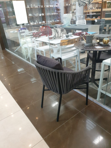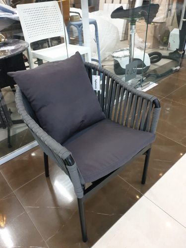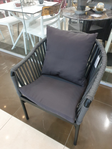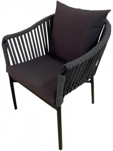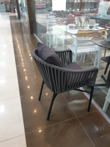 Уличное кресло с эргономичным и современным дизайном с алюминиевым каркасом и спинкой в плетении из роупа. Модель подходит для открытой террасы бара, ресторана, отеля или небольшого частного зимнего сада.