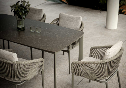 Применение специально разработанных материалов позволяет использовать коллекцию на открытом воздухе в полной безопасности, обеспечивая максимальную защиту от атмосферных воздействий без ущерба для эстетики и комфорта.