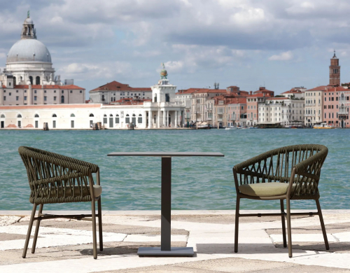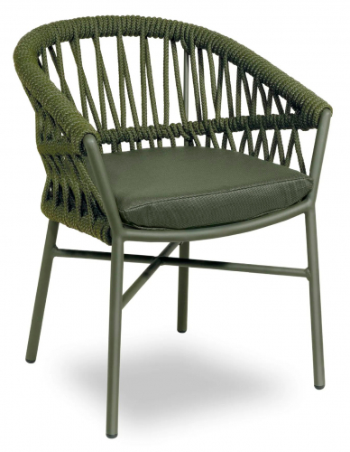Кресло Method, идеально подходящее для обустройства обеденных зон на открытом воздухе, обладает удивительно приятным дизайном. Ярким акцентом модели, привлекающим внимание, является плетение из прочного и долговечного каната роуп. Он красиво обвивает корпус кресла, тем самым придает ощущение теплоты и гостеприимства. Максимальный комфорт обеспечивает мягкая и удобная подушка на сиденье, идущая в комплекте. А возможность штабелирования делает модель функциональной и позволяет существенно экономить место при хранении и транспортировке.