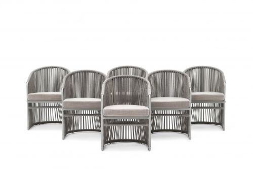 Tibidabo - коллекция садовой мебели с переплетением из синтетического волокна в ручном исполнении и рамой из окрашенного алюминия. Такая простая и в то же время элегантная мебель может украсить террасы ресторанов, отелей или вашего дома. Идеально подходит для внутреннего и наружного применения.