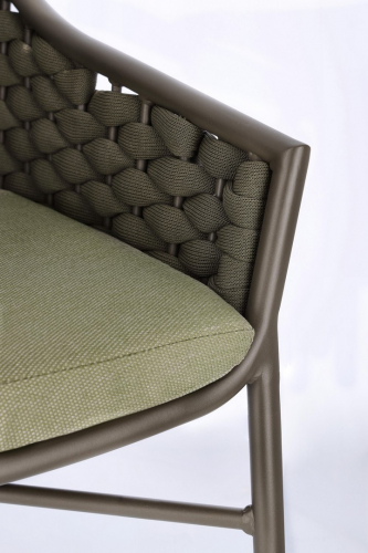 Кресло Everly обладает изюминкой в виде плетеного корпуса. Оно отлично подойдет для обустройства как открытых пространств, так и помещений различных назначений. Плетеный корпус дополняется мягкой и удобной подушкой на сиденье, которая придает максимальный комфорт модели. Также подушка имеет съемный чехол, благодаря чему она проста в уходе и обслуживании. Алюминиевый каркас обеспечивает долговечность, надежность и прочность всей конструкции.