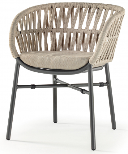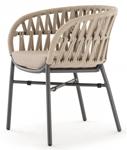 Кресло Tahiti выполнено из алюминия, плетение - из полиолефинового каната. Благодаря высококачественным материалам кресла подходят для использования в помещении и на открытом воздухе. Мягкая подушка на сиденье из прочной быстросохнущей ткани, устойчивой к воздействию ультрафиолетовых лучей и плесени.