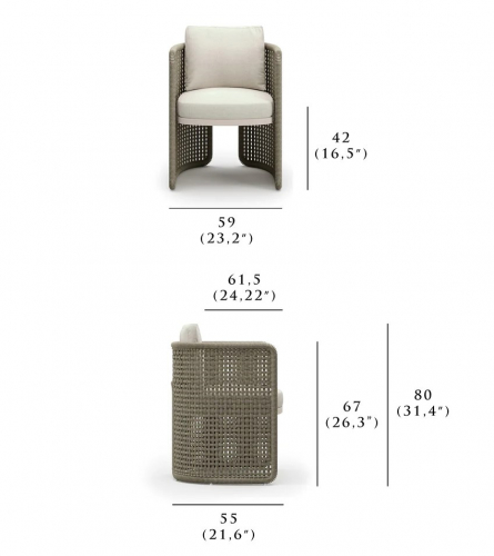 Коллекция Miura для отдыха на открытом воздухе - это приглашение к комфорту и элегантности. Мягкие, объемные сиденья привлекают внимание своей плетеной оболочкой, отличительной чертой, достигнутой за счет использования акриловых шнуров разного диаметра. Это плетение не только придает уникальный внешний вид, но и добавляет привлекательные тактильные ощущения. Miura предлагает широкий ассортимент элементов для уличной среды, гарантируя решения для различных потребностей. От предметов мебели для отдыха, которые приглашают расслабиться и комфортно провести время, до обеденных наборов, которые сочетают стиль и функциональность для дружеских встреч, вплоть до шезлонгов, каждый элемент разработан, чтобы придать характер окружающей среде.