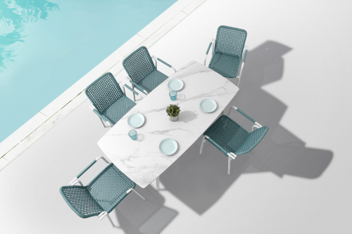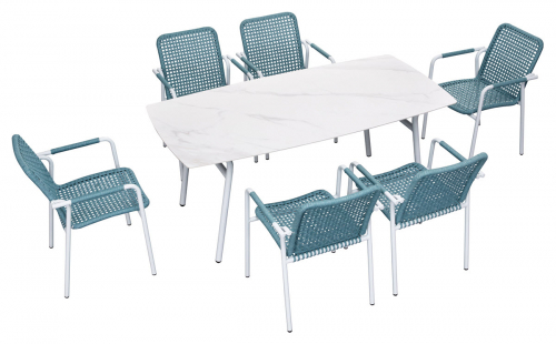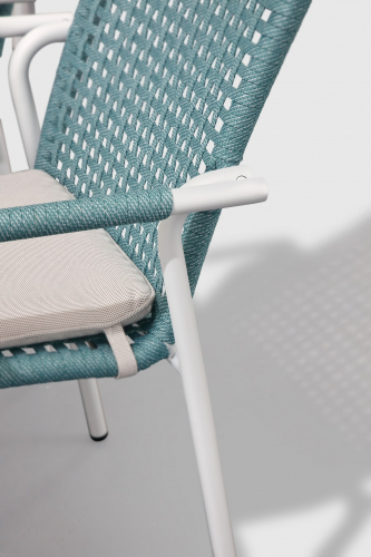 Коллекция мебели Pioneer 3.0, выполненная из прочной алюминиевой конструкции, сочетает в себе элегантный дизайн и функциональность, идеально подходя для использования на открытых площадках и балконах. Ее плоский и открытый стиль плетения обеспечивает комфорт как с подушками, так и без них, адаптируясь под различные потребности - от обеденных зон до зон отдыха. Светло-зеленый цвет мебели придает ей свежий и стильный вид, гармонично вписывающийся как в частные, так и в коммерческие пространства, а толстые подушки на сиденьях и спинке гарантируют максимальный комфорт и расслабление, напоминая о беззаботных моментах юности.