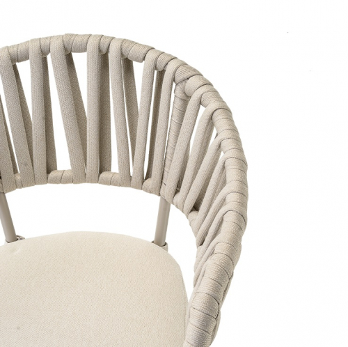 Прочный алюминиевый каркас гарантирует устойчивость и долговечность, а акриловый канат делает кресло не только стильным, но и износостойким. Съёмная подушка из олефина с водоотталкивающей пропиткой обеспечивает мягкость сидения и легкость в уходе - даже после дождя она быстро сохнет и сохраняет безупречный вид.