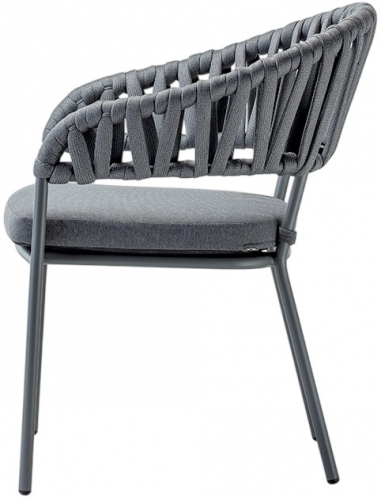 Прочный алюминиевый каркас гарантирует устойчивость и долговечность, а акриловый канат делает кресло не только стильным, но и износостойким. Съёмная подушка из олефина с водоотталкивающей пропиткой обеспечивает мягкость сидения и легкость в уходе - даже после дождя она быстро сохнет и сохраняет безупречный вид.