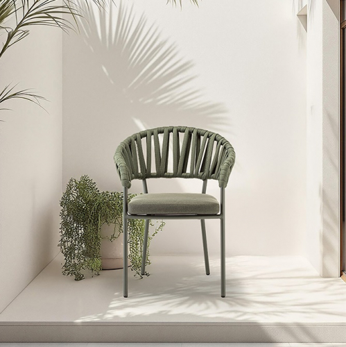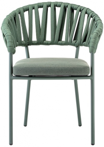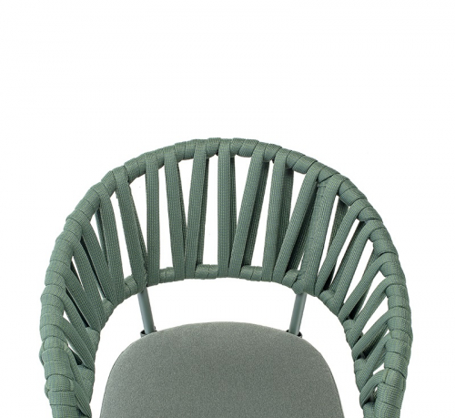Прочный алюминиевый каркас гарантирует устойчивость и долговечность, а акриловый канат делает кресло не только стильным, но и износостойким. Съёмная подушка из олефина с водоотталкивающей пропиткой обеспечивает мягкость сидения и легкость в уходе - даже после дождя она быстро сохнет и сохраняет безупречный вид.