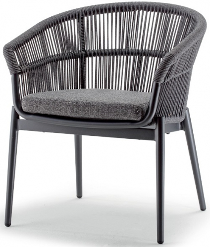 Обеденное кресло Tropea - это воплощение современной эстетики, продуманного комфорта и надежности. Легкий, но прочный алюминиевый каркас с плетением из износостойкого текстильного каната обеспечивает долговечность и устойчивость к внешним воздействиям. Съемная мягкая подушка сиденья, выполненная из высококачественного олефина с быстросохнущим пеноматериалом, гарантирует удобство даже при длительном использовании, сохраняя форму и презентабельный вид на протяжении многих сезонов.