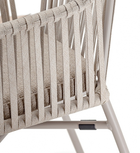 Прочный алюминиевый каркас гарантирует устойчивость и долговечность, а полиолефиновый канат делает кресло не только стильным, но и износостойким. Съёмная подушка из олефина обеспечивает мягкость сидения и легкость в уходе - даже после дождя она быстро сохнет и сохраняет безупречный вид.