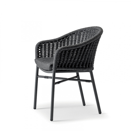 Кресло Lecce - гармония современного дизайна и практичности. Его лёгкая алюминиевая рама дополнена обволакивающей спинкой с изящным плетением из акрилового каната, создавая ощущение воздушности и уюта.