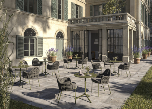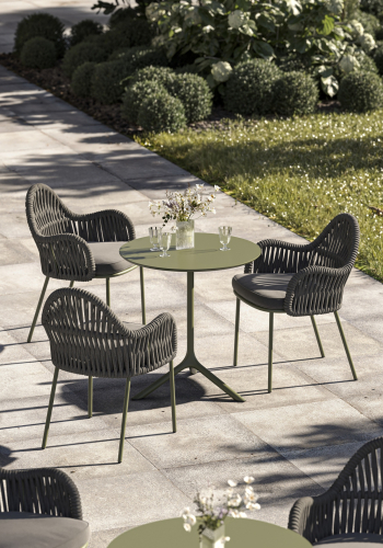 Malvasia Riviera переосмысляет философию уличного отдыха, смещая акцент с индустриальной структуры на природную теплоту. В отличие от оригинальной модели Malvasia с её строгим металлическим плетением, новая версия представляет каркас с изящной веревочной спинкой - она наполняет силуэт мягкостью и естественным ритмом. Щедрые подлокотники и глубокое посадочное место формируют мгновенное ощущение комфорта, а сама конструкция словно сплетена из воздуха: продуманное переплетение веревок в тон создает иллюзию свежего бриза, даря долгожданную прохладу в летний зной.