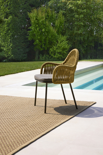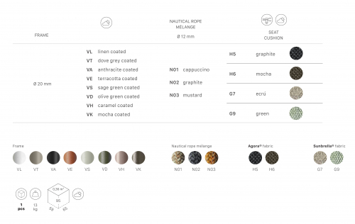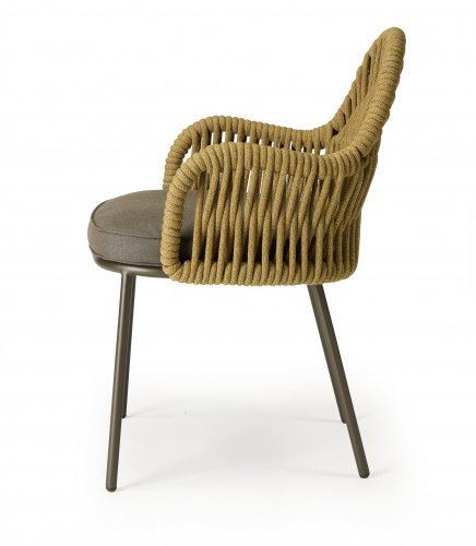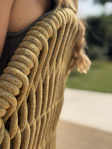 Malvasia Riviera переосмысляет философию уличного отдыха, смещая акцент с индустриальной структуры на природную теплоту. В отличие от оригинальной модели Malvasia с её строгим металлическим плетением, новая версия представляет каркас с изящной веревочной спинкой - она наполняет силуэт мягкостью и естественным ритмом. Щедрые подлокотники и глубокое посадочное место формируют мгновенное ощущение комфорта, а сама конструкция словно сплетена из воздуха: продуманное переплетение веревок в тон создает иллюзию свежего бриза, даря долгожданную прохладу в летний зной.