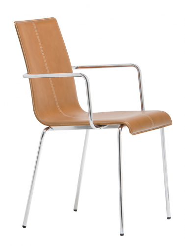 Очень простой и культовый каркас с инновационной изогнутой спинкой делают коллекцию Kuadra удобной и универсальной. В обивке используется крупная белая строчка, которая придает стулу изюминку. Данный тип кожи позволяет максимально долго использовать мебель. Особенно эффектно кресла будут смотреться в интерьере лофт. Данная модель штабелируется, что делает ее наиболее удобной в транспортировке и хранении.