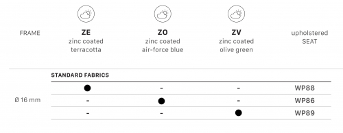 Обращаем ваше внимание, что каждый цвет каркаса сочетается только с определенными цветами обивки. При выборе цветовой комбинации ориентируйтесь на таблицу с палитрой, где указаны доступные варианты сочетаний.