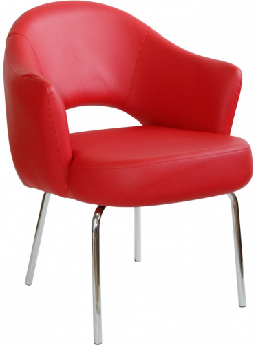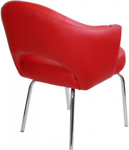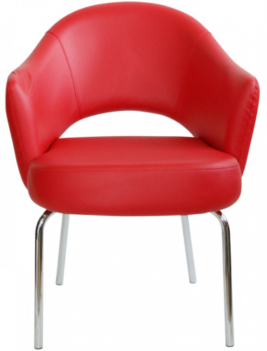 Дизайнерское кресло A621 с мягкой обивкой станет прекрасным дополнением интерьера частного дома, а также кафе, бара или ресторана. Крепкий металлический каркас, обивка из экокожи обладают функциональностью и эстетичностью.