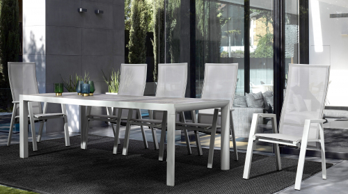 Уличное кресло Steven подходит для обстановки обеденной зоны, однако в нем можно и просто отдохнуть. Каркас выполнен из алюминия с порошковым покрытием (полиэстер), покрытие спинки и сиденья - из текстилена 1x1 спинка и сиденье. Положение спинки регулируется, что обеспечивает максимальный комфорт.