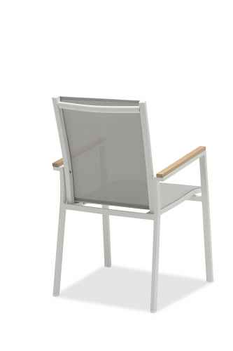 Кресло Sater отлично подойдет для организации обеденной зоны на открытом воздухе. Элегантный минималистичный дизайн модели подчеркивают тонкие вставки с текстурой тикового дерева. Модель может сочетаться со многими столами как из алюминия, так и из дерева благодаря нейтральным цветам. Sater органично впишется в пространства частных коттеджей, а также станет незаменимым атрибутом в благоустройстве зоны отдыха в гостиницах или отелях.