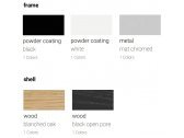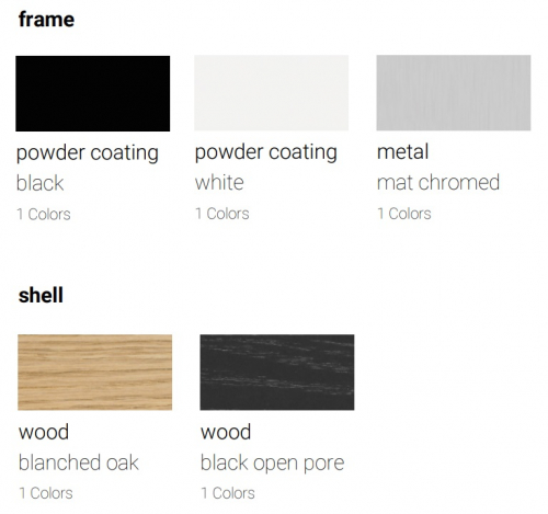 Варианты отделки каркаса: белое или черное порошковое покрытие, матовое хромирование.
