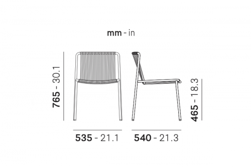 Коллекция Tribeca создана из отголосков памяти, современной интерпретации классических стульев террасы шестидесятых из переплетенной стали. Стул со структурой из металлической трубы, обработанной и окрашенной для наружного использования. Спинка и сиденье выполнены из вертикально переплетающихся канатов. Модель специально разработана для использования на открытом воздухе.