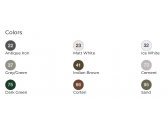 Возможные цвета: античное железо (22), матовый белый (23), ледяной белый (32), серо-зеленый (37), индийский коричневый (41), цемент (73), темно-зеленый (75), кортен (86), песочный (95).