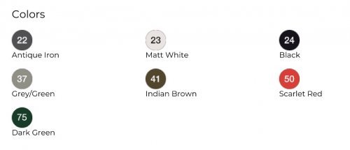 Материал: окрашенная сталь. Состав: железо и углеродный сплав с содержанием углерода менее 2%, обработанные, чтобы выдерживать воздействия окружающей среды, с помощью уникально антикоррозионной обработки EMU-Coat.