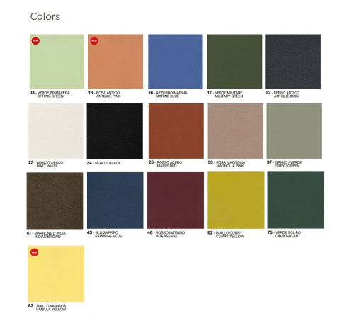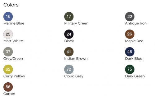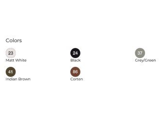 Материал: окрашенная сталь. Состав: железо и углеродный сплав с содержанием углерода менее 2%, обработанные, чтобы выдерживать воздействия окружающей среды, с помощью уникально антикоррозионной обработки EMU-Coat.
