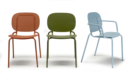 Si-Si - коллекция стульев и кресел, имеющих эклектичное, хамелеоноподобное сиденье с эстетической прочностью, чтобы интерпретировать хрупкий баланс между внутренним и наружным. В коллекцию входят 4 базовые модели с характерными деталями: Si-Si (гладкая текстура), Si-Si Dots (перфорированная текстура), Si-Si Barcode (текстура с вертикальными разрезами) и Si-Si Wood (сиденье и спинка с деревянными планками). Стулья штабелируются по 6 шт. и подходят для использования в помещении и на открытом воздухе.