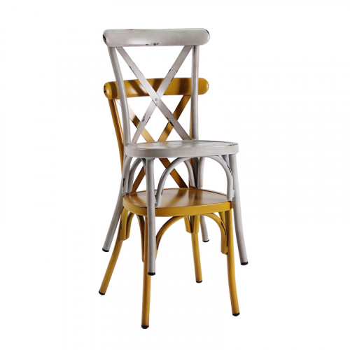 Универсальный яркий металлический стул с крестообразной спинкой органично впишется в обстановку баров, кафе и летних террас в загородных домах и общественных заведениях, оформленных в таких стилях, как индустриальный, винтажный, классический, французский, скандинавский, деревенский, лофт, современный.