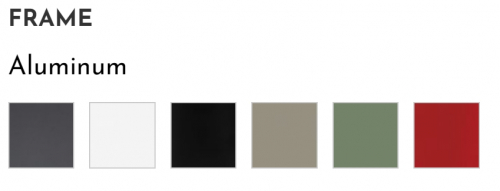 Варианты отделки: капучино (CA), зеленый шалфей (SG), белый (BS), антрацит (AN), черный (NE), красный (RO).