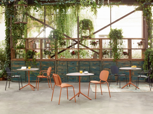 Si-Si - коллекция стульев и кресел, имеющих эклектичное, хамелеоноподобное сиденье с эстетической прочностью, чтобы интерпретировать хрупкий баланс между внутренним и наружным. В коллекцию входят 4 базовые модели с характерными деталями: Si-Si (гладкая текстура), Si-Si Dots (перфорированная текстура), Si-Si Barcode (текстура с вертикальными разрезами) и Si-Si Wood (сиденье и спинка с деревянными планками). Стулья штабелируются по 6 шт. и подходят для использования в помещении и на открытом воздухе.