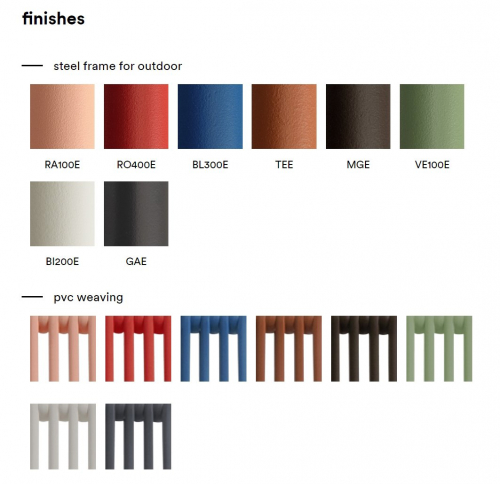 Коллекция Tribeca создана из отголосков памяти, современной интерпретации классических стульев террасы шестидесятых из переплетенной стали. Стул со структурой из металлической трубы, обработанной и окрашенной для наружного использования. Спинка и сиденье выполнены из вертикально переплетающихся канатов. Модель специально разработана для использования на открытом воздухе.